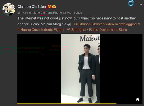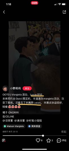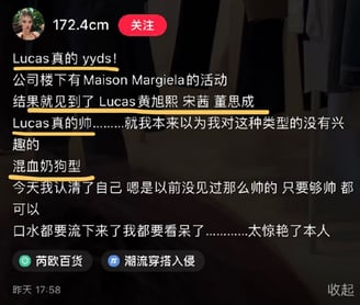 Some comments from fashion bloggers who saw Lucas at the Maison Margiela event yesterday Compiled by 烤鸡很好吃bro. If you have weibo, please like the original post here: