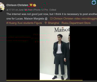 Some comments from fashion bloggers who saw Lucas at the Maison Margiela event on June 09, 2021.