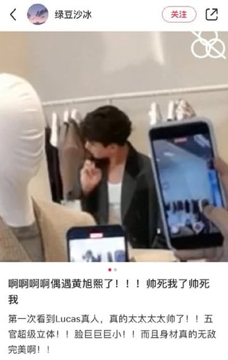 绿豆沙冰: Aaaah, I met Huang Xuxi by chance!! So handsome, so handsome. I saw Lucas in person for the first time, so so so so so handsome!! His facial features are super three-dimensional!! His face is sooooo small!! And his body is really unmatched and perfect! !