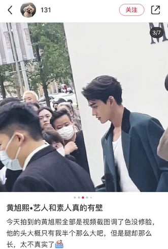 Huang Xuxi. There's really a big difference between artists and amateurs. Huang Xuxi photographs today are all video screenshots with tuned colours and no face edit. His head is about half the size of mine, but his legs are so long, which is too unreal.