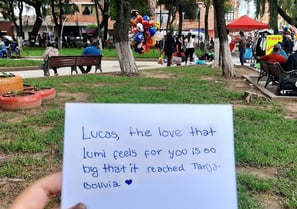 Lucas, you are the most full of life person I have ever seen. I am very grateful to you because you saved my life and I am happy thanks to you I hope you are well and I will be waiting for your return with much love. Happy birthday, I love youβ‘ From: Bianca Marquez.